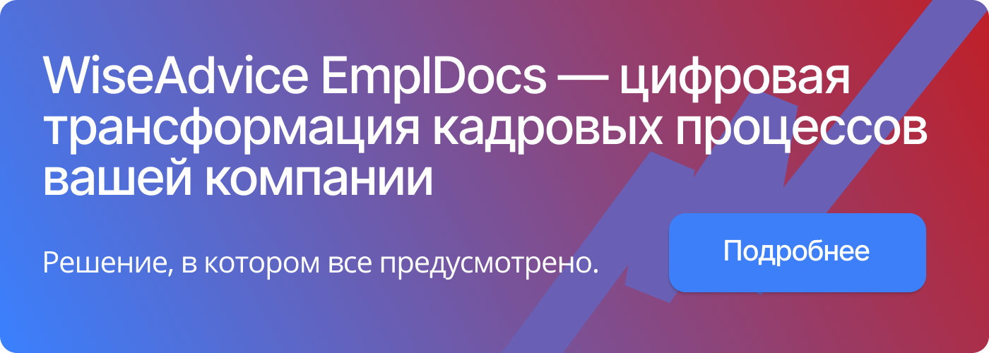 ИдеяЕсли кадровое делопроизводство в вашей организации уже запущено и находится в плачевном состоянии, вам поможет пошаговая инструкция по восстановлению кадрового учета от специалистов 1C-WiseAdvice.Также вы можете поручить эту задачу экспертам 1C-WiseAdvice — они приведут в порядок и систематизируют работу с кадровыми документами.